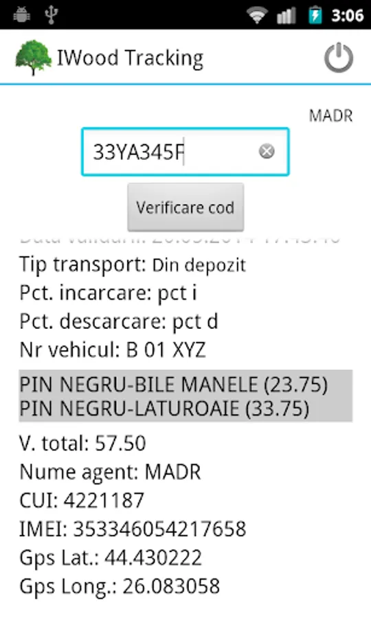 This application is the component inspector Integrated Information System Real-time tracking of timber from Romania.