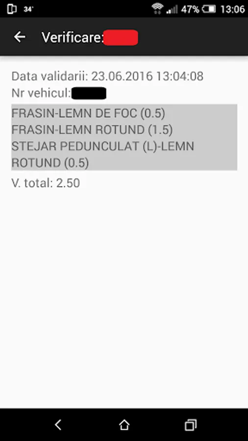 The application can be used by the public to verify a shipment of timber. Verifying entering a car registration number.