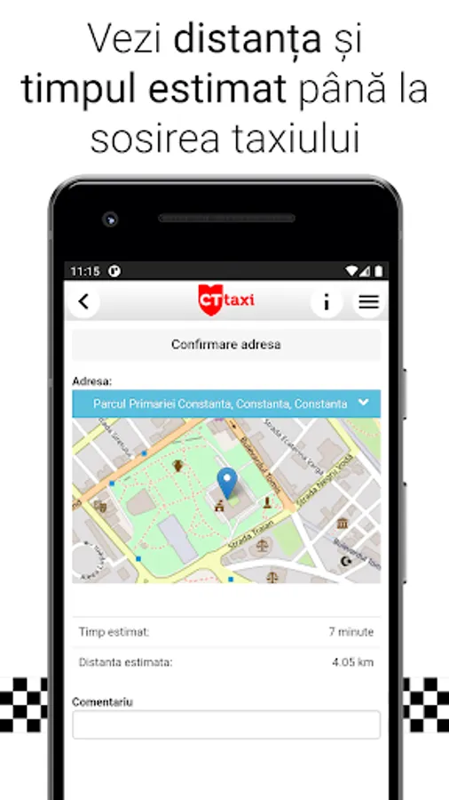 Simply let the phone's GPS find your correct position (or place the map in the correct position), and again, in a few seconds, you will receive the fleet response, along with the estimated time of presentation.