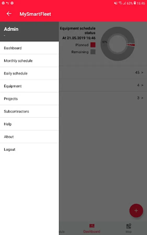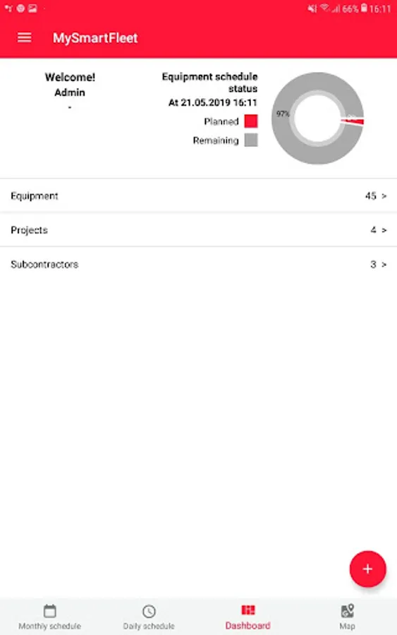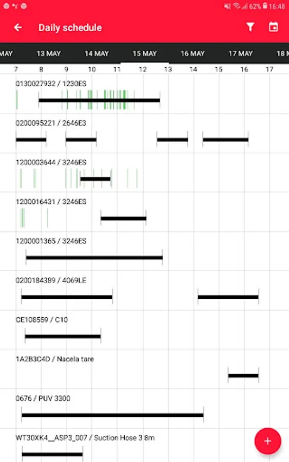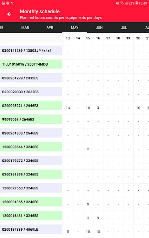 ** Instantly check your application dashboard to evaluate equipment schedule status.