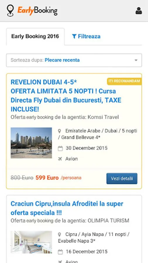 With Early Booking app will be updated with the biggest discounts offered by agencies, book early for the holidays.