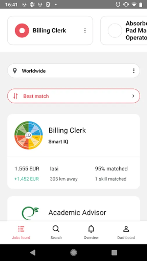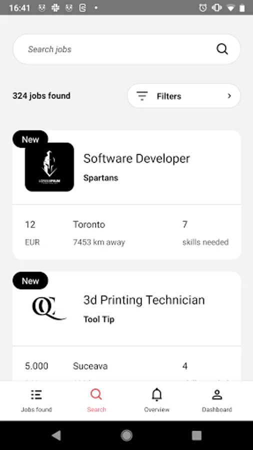 Based on the fields you complete in your profile, Jobby will show you jobs that match and cover most of your skills. This way you will be able to find out easily which of the listed jobs suit you the most.