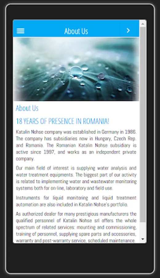 Visit virtually the cool company Katalin Nohse SRL, one of the leading provider for water quality measurement, monitoring and treatment.