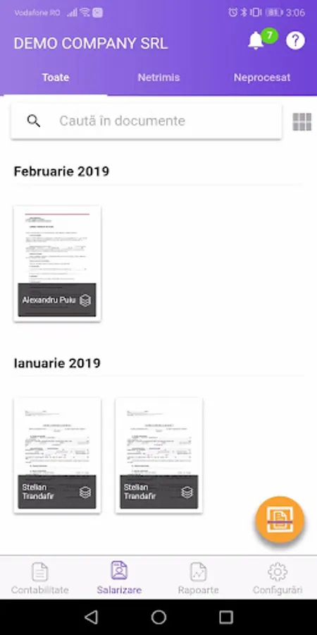 You upload your accounting and payroll documents (by scanning with the app or via the online app).