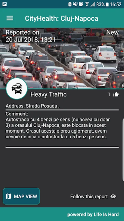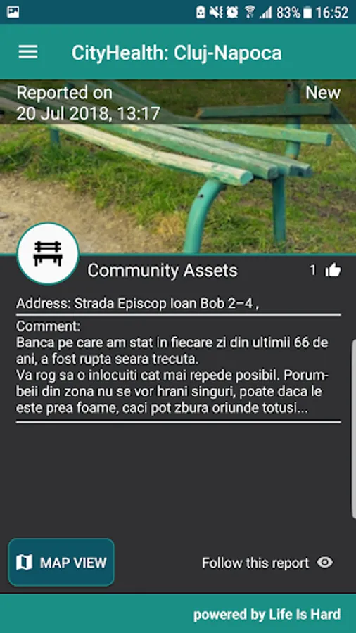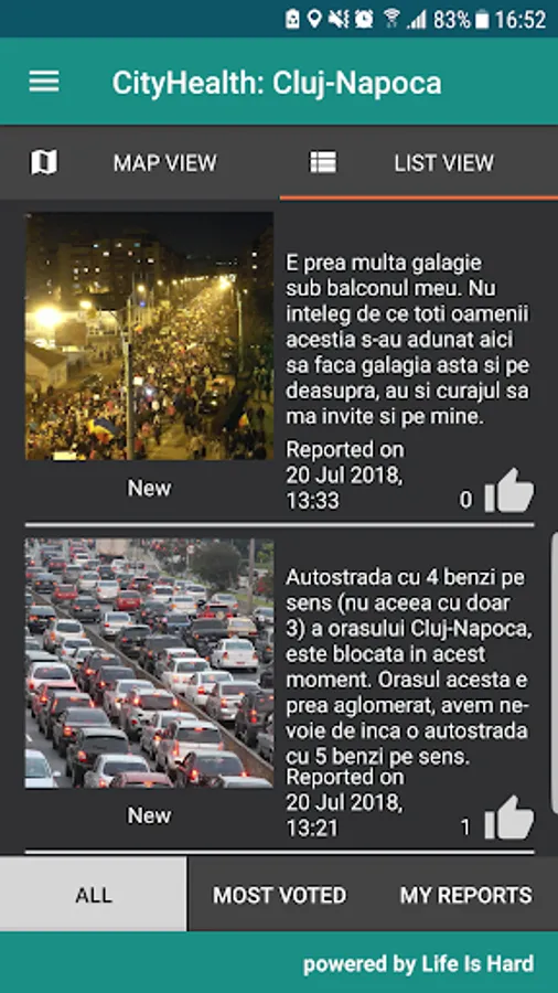 Citizens via a dedicated mobile application may report various failures: potholes, traffic lights that do not work, damage to utility systems, storage of waste in unauthorized areas, etc.