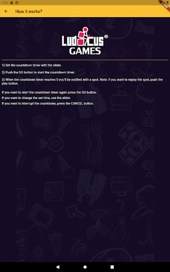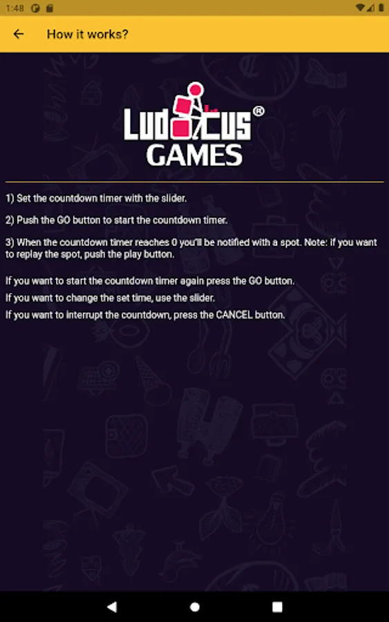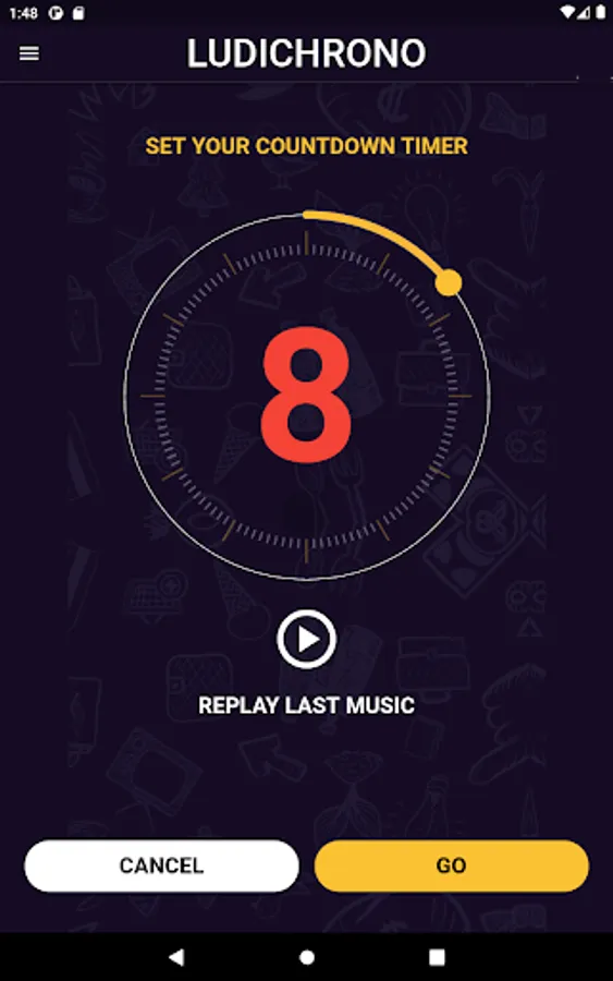 An easy-to-use countdown timer that allows you to set, modify and start a countdown between 1 - 60 seconds. When the time runs out, it will warn you by playing a random, funny sound effect.