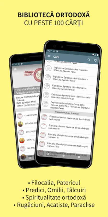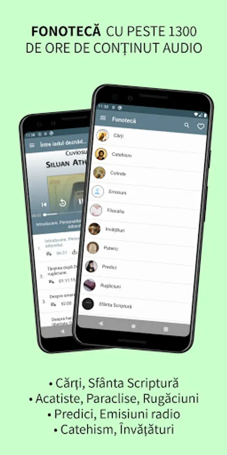 - Sermons (Father Cleopa), Homilies / Interpretations / Explanations (Saint John Chrysostom, Saint Nicholas Velimirovici, Fr. Florin Botezan, Metropolitan Ierothei Vlahos, Archimandrite Arsenie Papacioc);