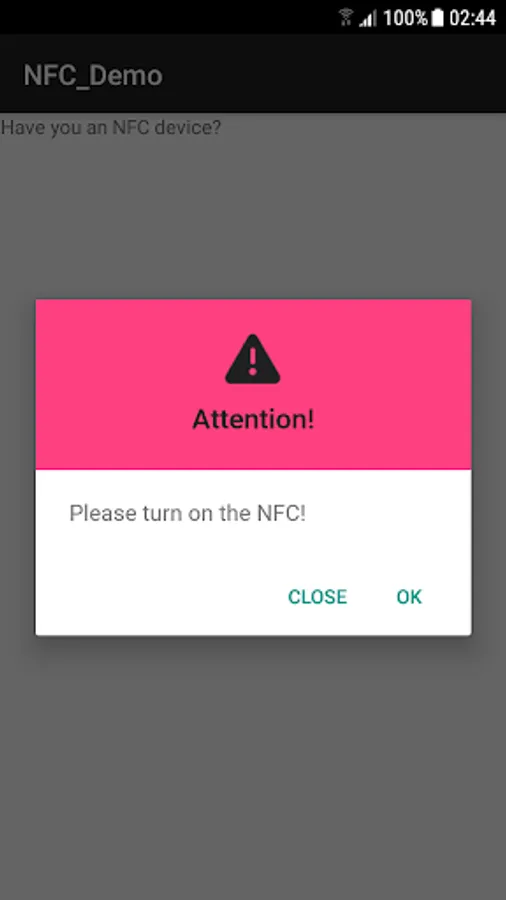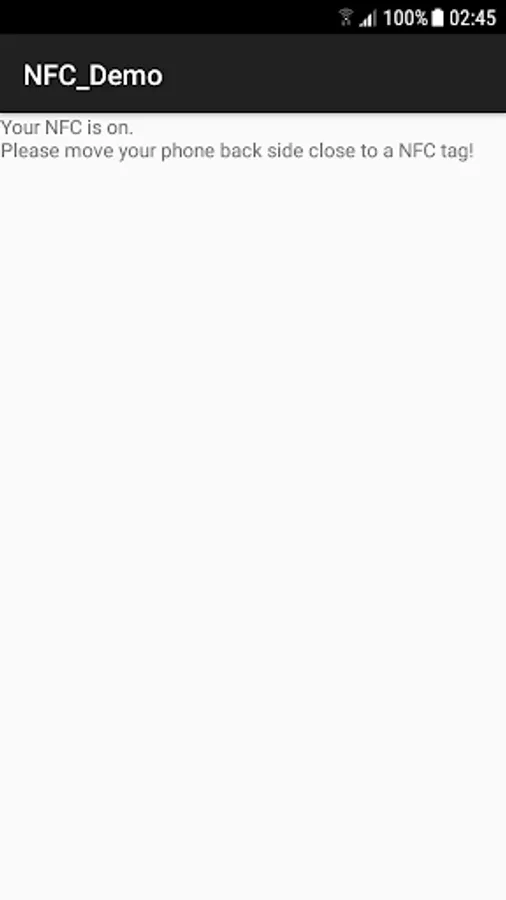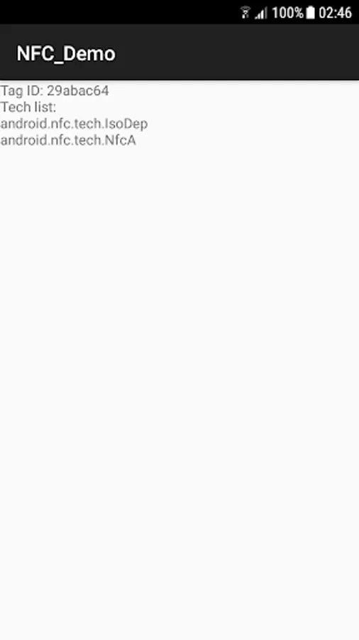 When a wireless bank card ( NFC) is read the available NFC data is displayed: ID and technologies.