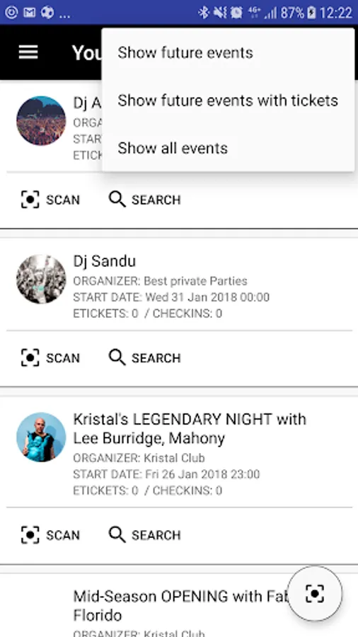 Get this application to scan etickets and member cards at the entrance of your events. You need to have an organizer role in order to login to this application.