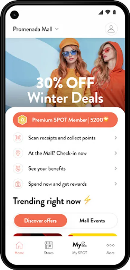• My SPOT loyalty program: earn loyalty points for purchases made in our shopping centers. Scan the receipt and get loyalty points.