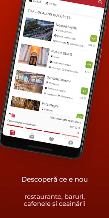 You can book a table in over 2000 restaurants, bars or coffee places from Bucharest, Brasov, Cluj, Timisoara, Iasi, Sibiu, Satu Mare, Suceava, Bacău, Valea Prahovei or seaside places without calling. Furthermore, ialoc offers ToGo option through personal pick-up or virtual drive-through.