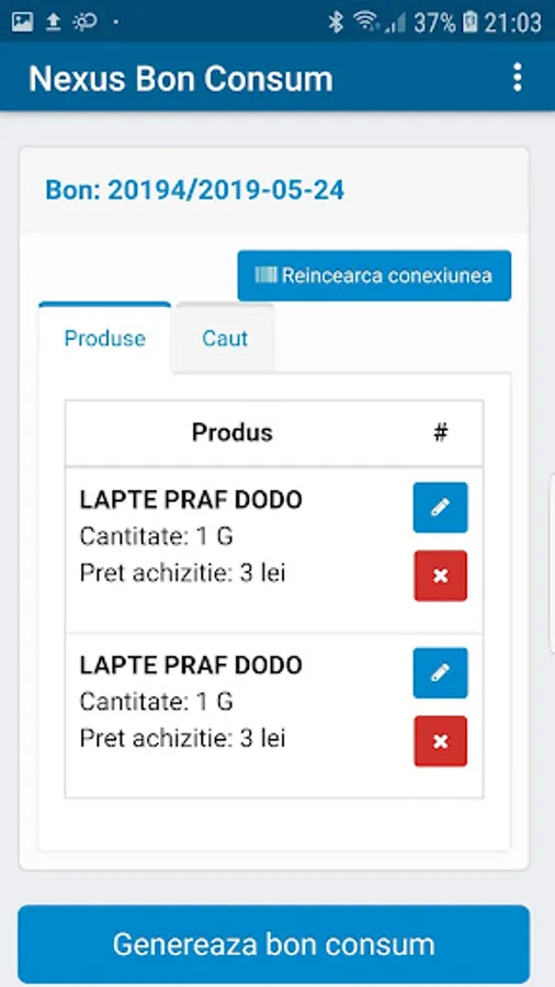 Mobile application designed for the movable achievement of consumer bills for raw materials and raw materials by scanning.