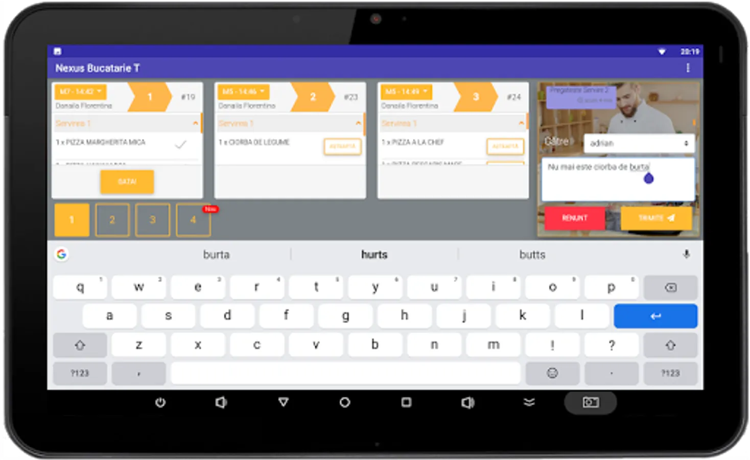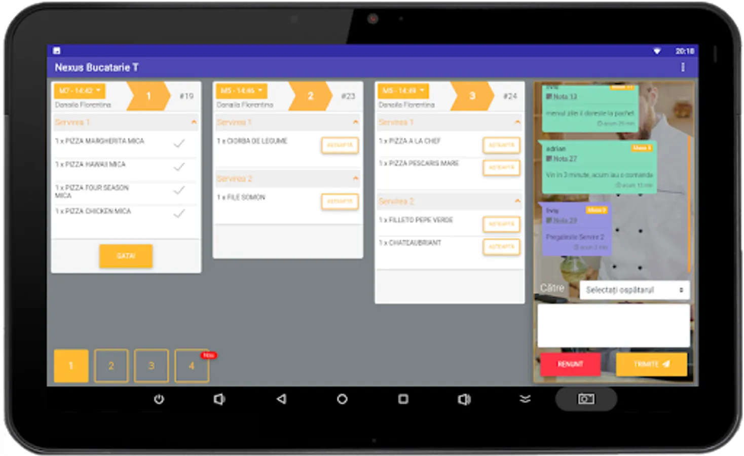 This application integrates into the management system of the restaurant and achieves both automatic communication and written messages between waiters and the kitchen, bar, etc.