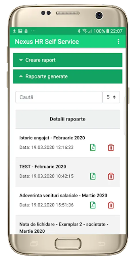Employees have access to various documents from the personnel file and the possibility to create reports, can submit requests for rest holidays and can modify part of their personal data - such as: address, telephone, bank account, etc.