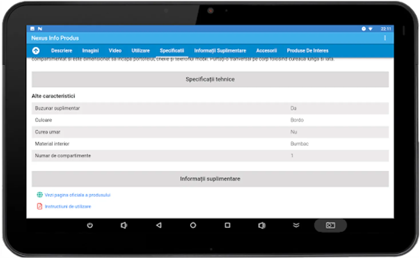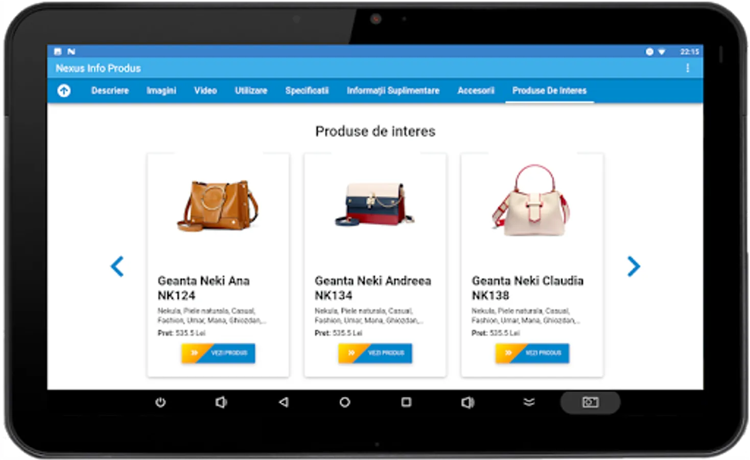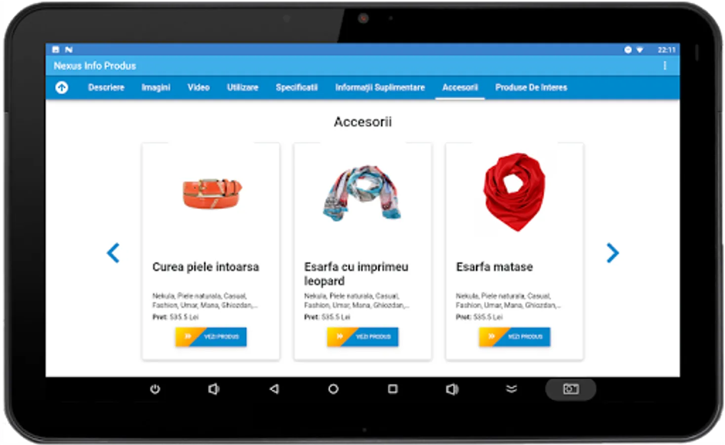 Nexus Product Info presents product details in an info-kiosk application.