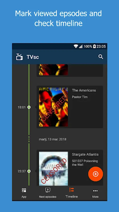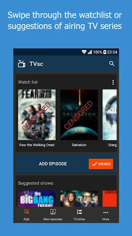 Group your favourite TV shows in a single location, check when next episode will be available. Mark watched episodes in order to remember your watch track list.
