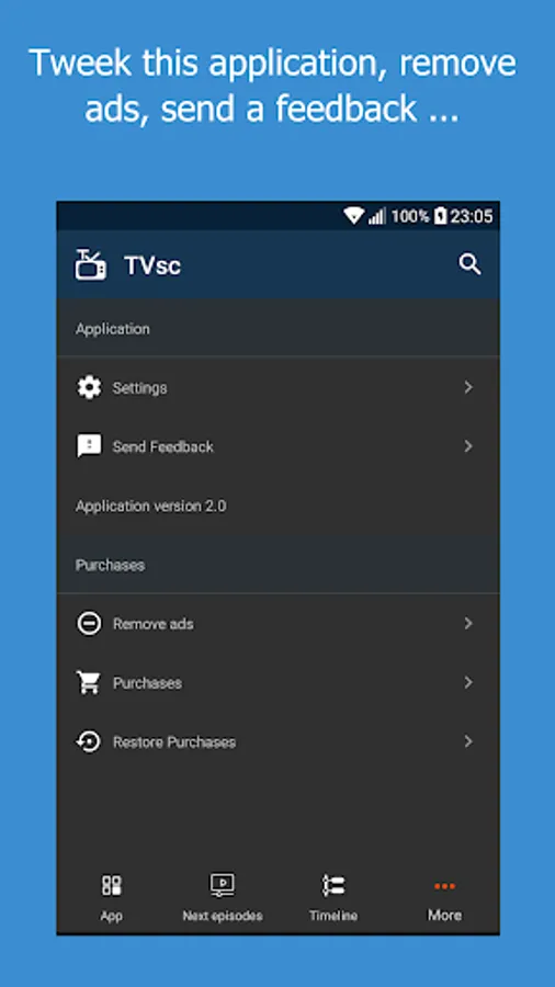 Free version limitations: save only 5 TV Shows limit, no limit for tracked episodes, ads in app. If you like free version and you do not want this limitations Upgrade to PRO from app Purchases menu