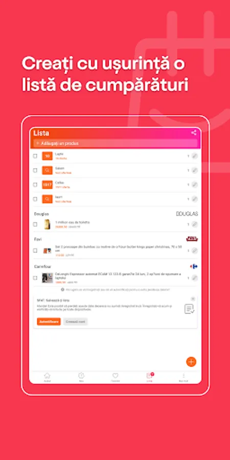 - The possibility of saving your favorite offers and creating your own shopping list;