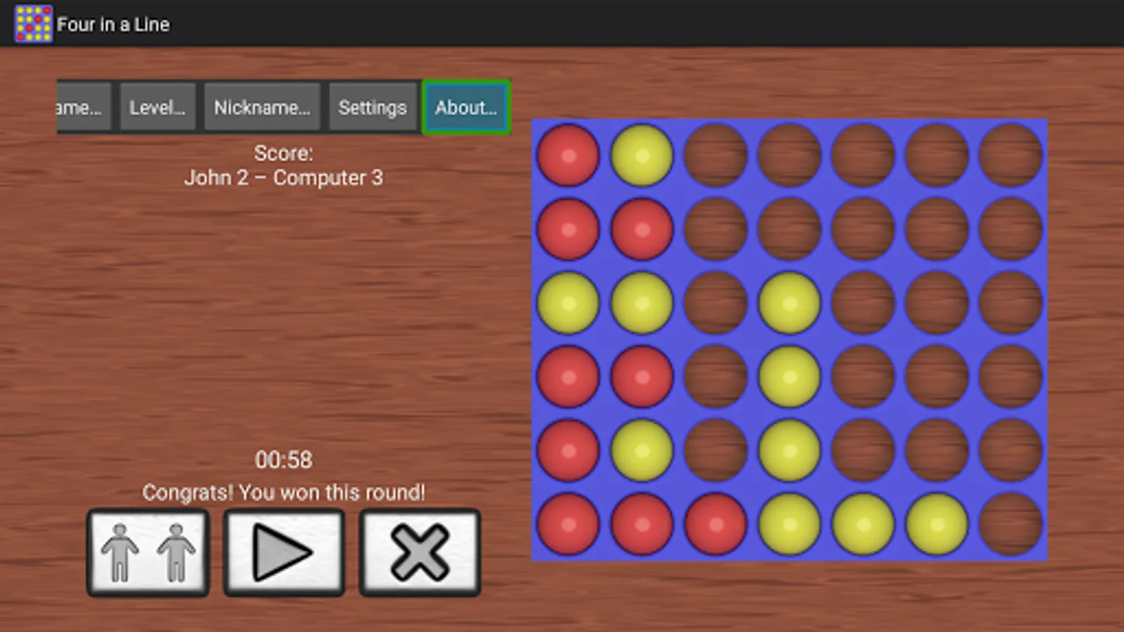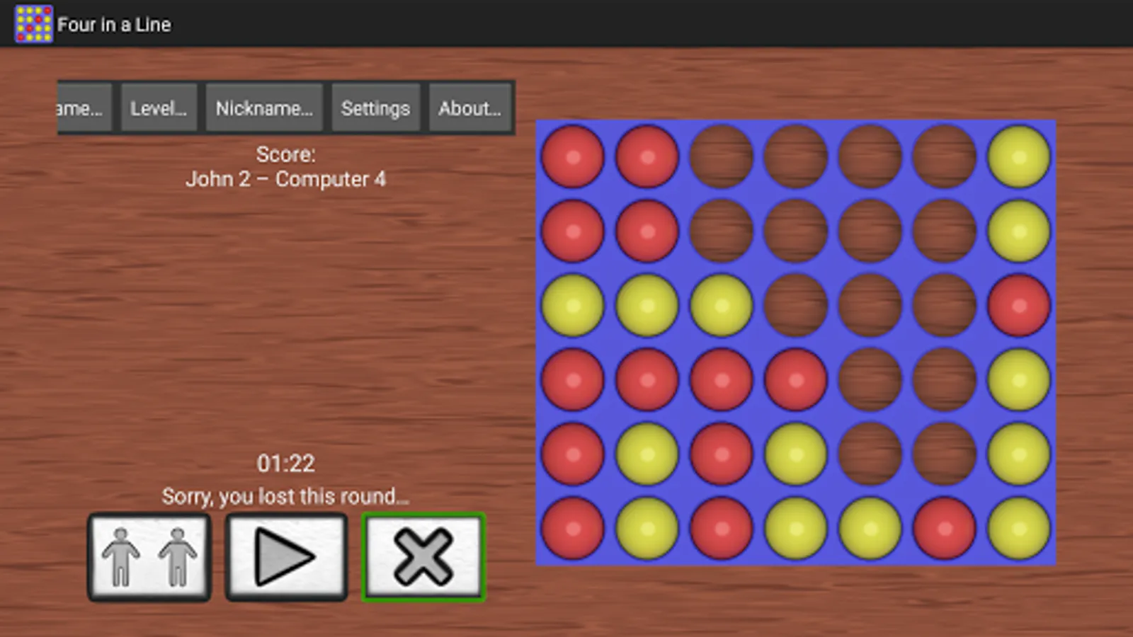 - Play against computer AI or against a local human partner;