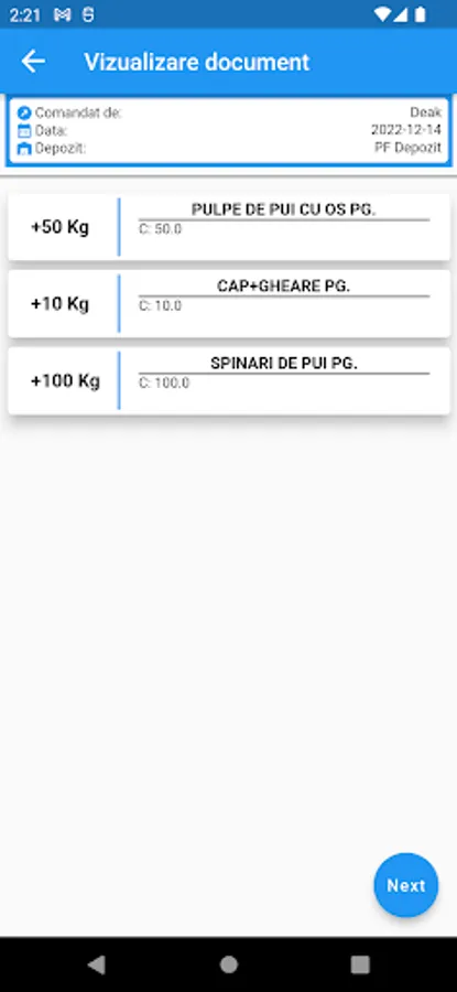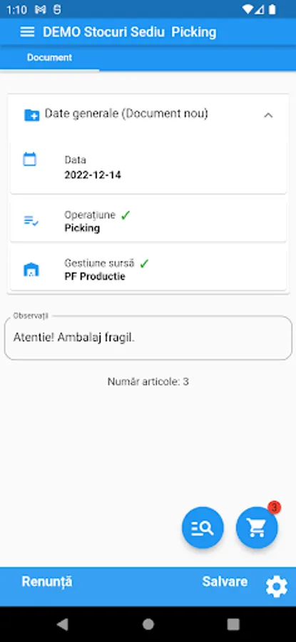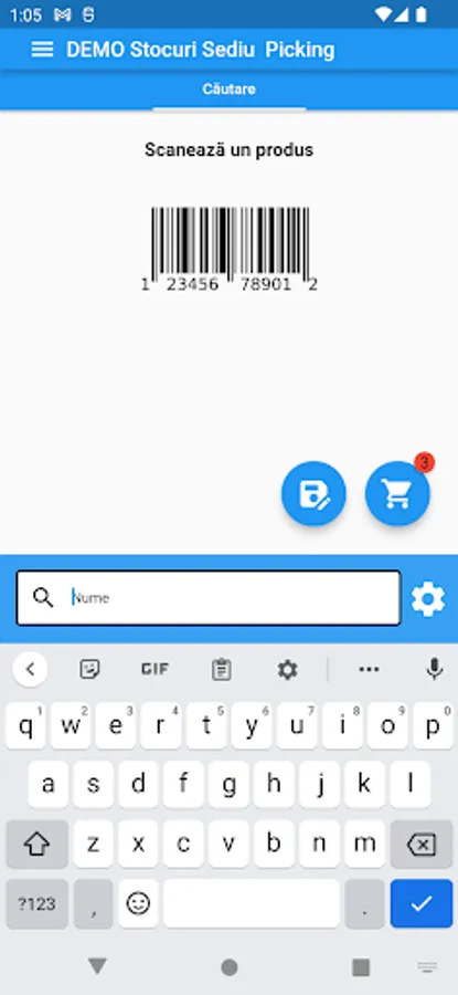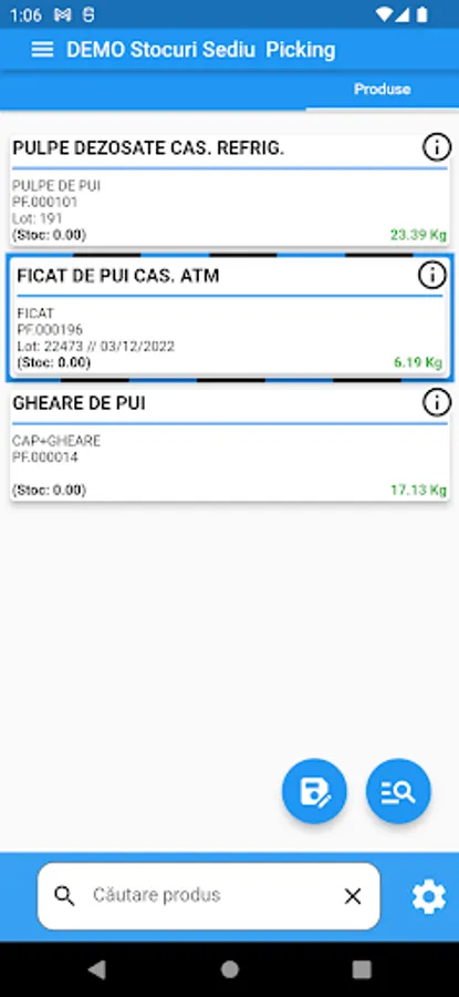 - Add new items to the invetory document's list, by either scanning (i.e. use of camera or an integrated scanner) or typing the barcodes, codes, names or material lots.