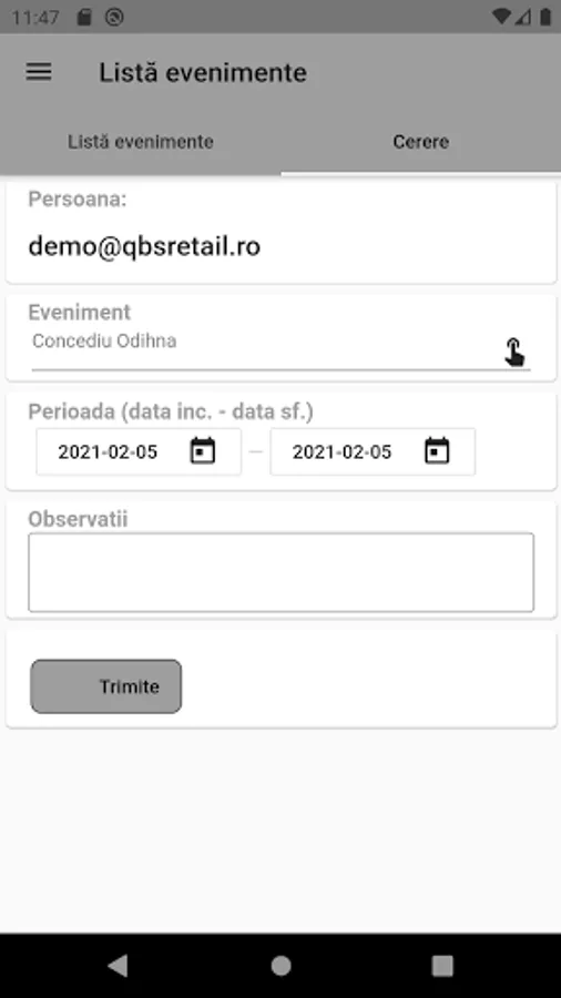 -for employees makes available to send their application for vacation and events.