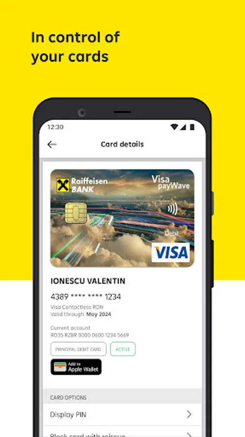 • Control over your cards: Block, reissue, or view your card PIN with just one touch.