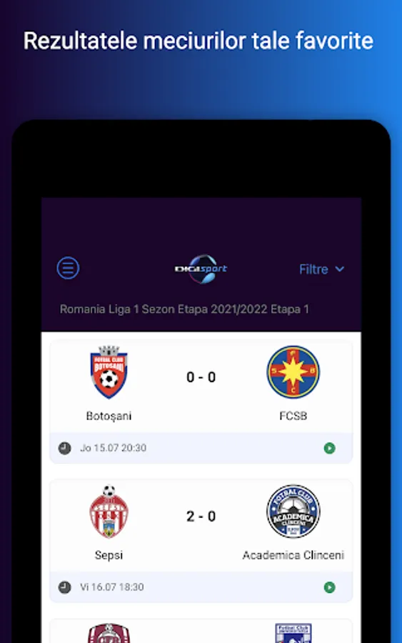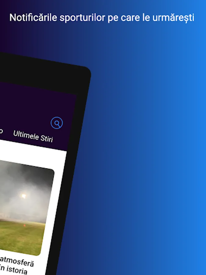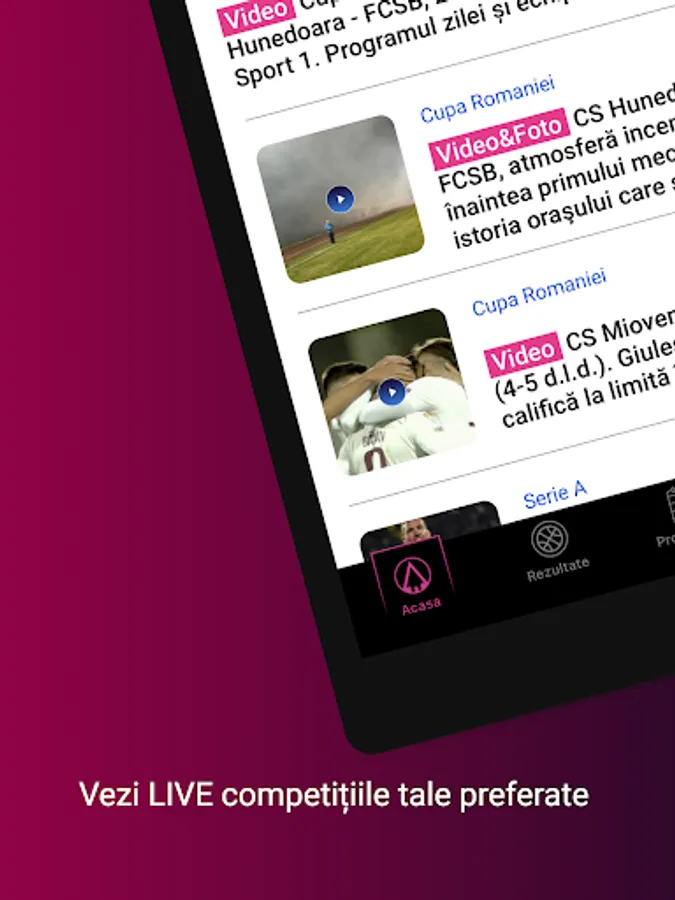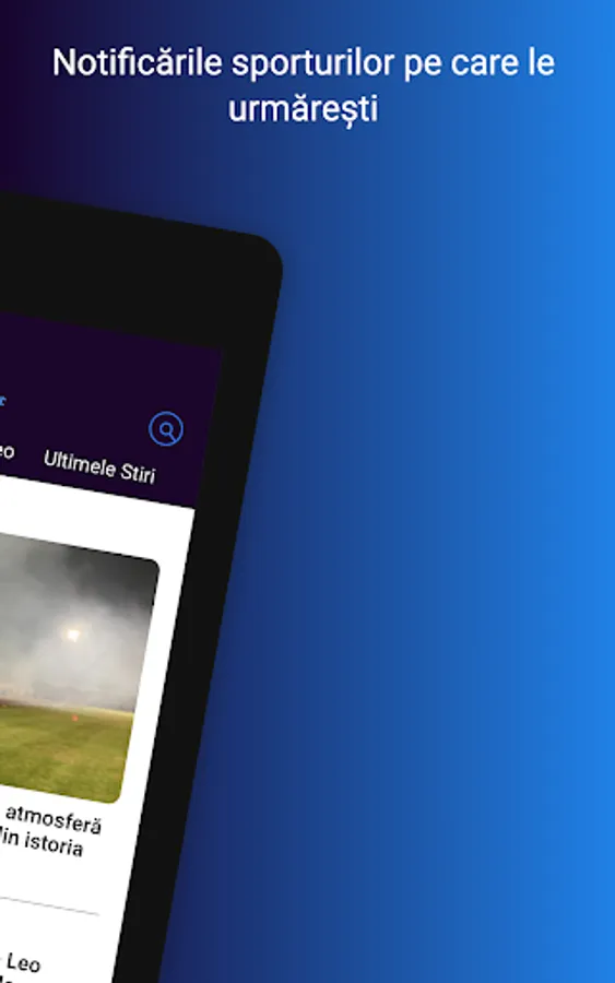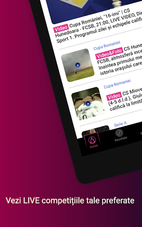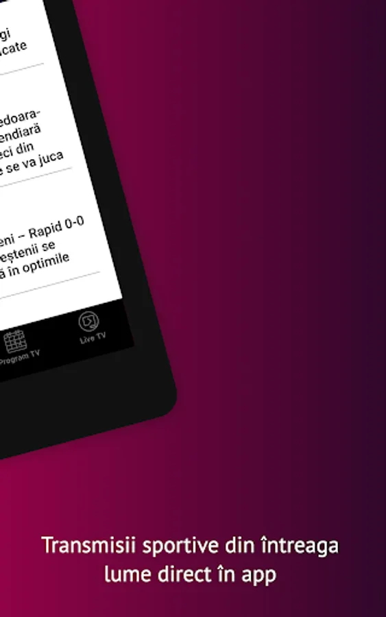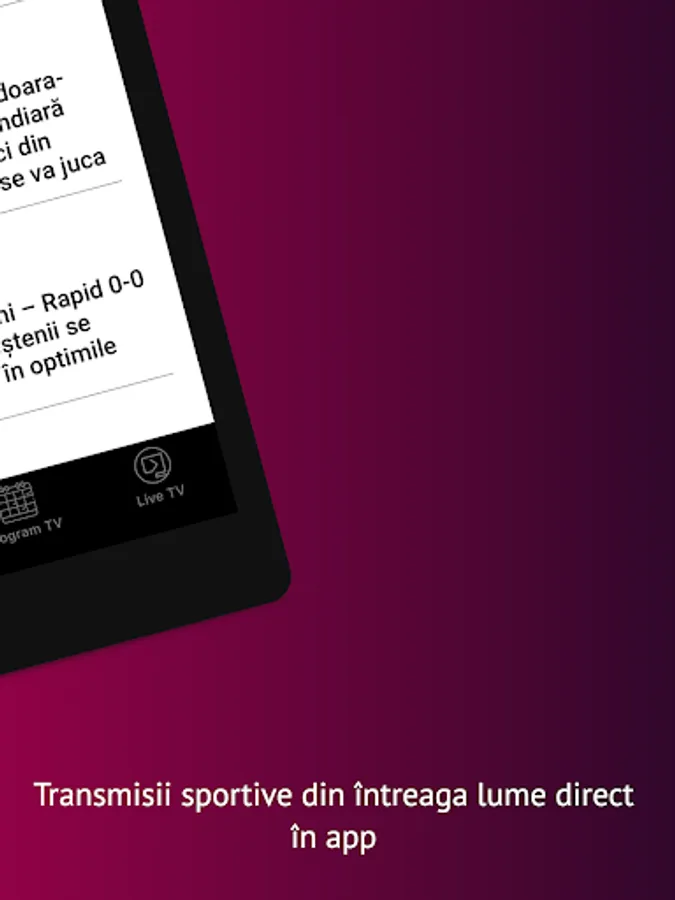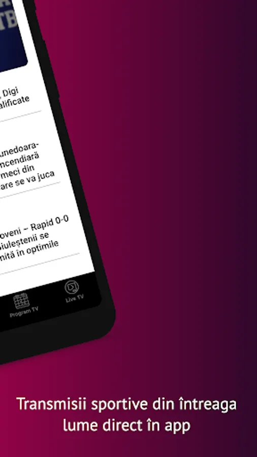 The application that helps you get to the sports and information that interests you much faster. In addition to the richest offer in Romania of news and live sports broadcasts, you now have the possibility to be personally informed about the start of the matches or the shows you want to watch