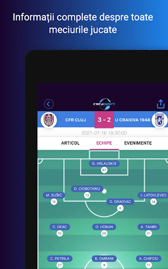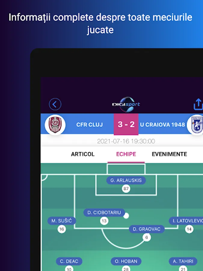 - Live Streams of Digi Sport channels and match broadcasts given exclusively on the website