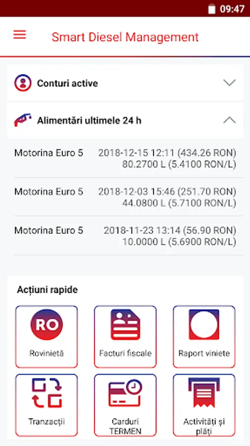 • acces la stațiile Smart Diesel și prețurile la combustibil