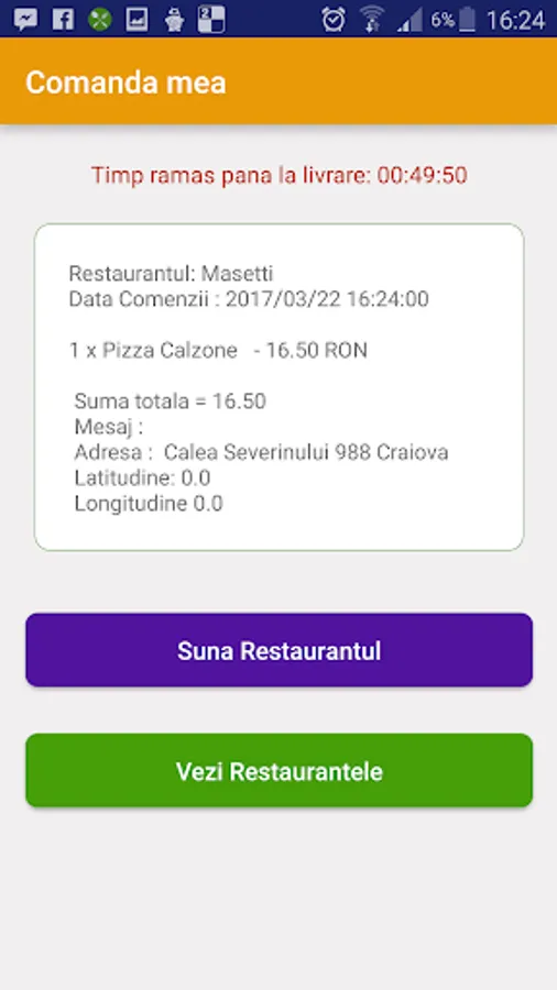 Orders are placed through SMS and receiving and processing them is the responsibility Restaurants.