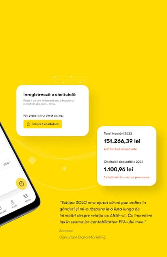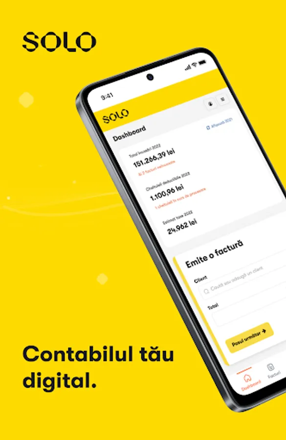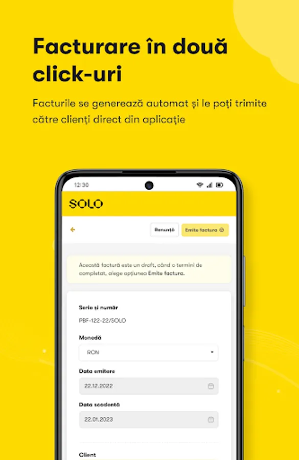 With SOLO, it's easy to add your clients to your account and bill the services you provide with your PFA, both in RON and in EUR or USD. Invoices are generated automatically and can be sent to the customer directly from the application.