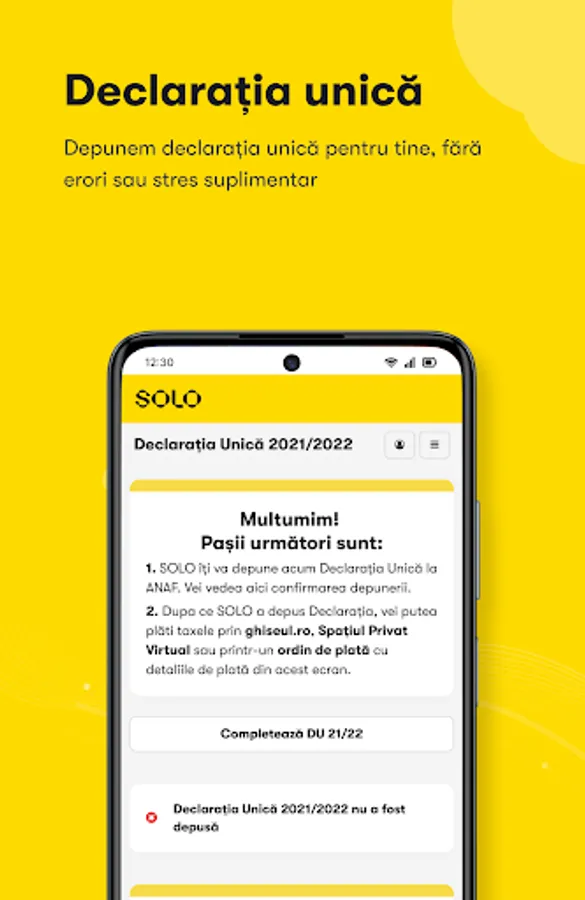 In the SOLO dashboard you can see the taxes you have to pay for the current year, based on the invoices and expenses entered in the platform. SOLO files the one-time return for you and guides you through the entire payment process without you having to interact with state bureaucracy at all.