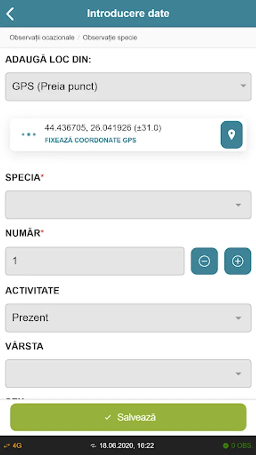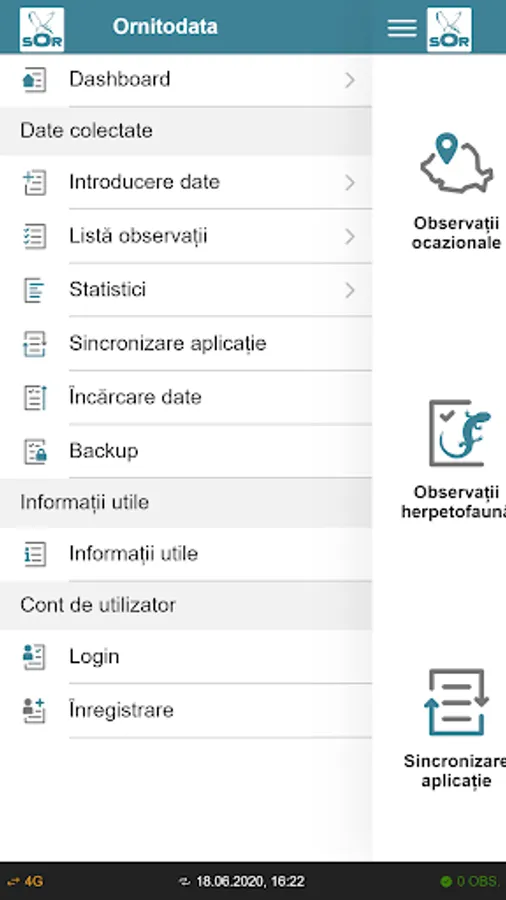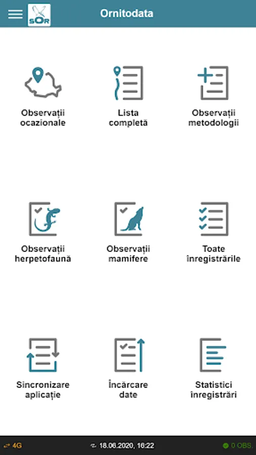 Ornitodata is an application of the Romanian Ornithological Society (SOR) used to collect bird observations. With its help can be noted directly in the field both occasional observations and data specific to monitoring programs (such as Monitoring Common Birds, Nesting Aquatic, Atlas, etc.). The application is aimed at both ornithologists and enthusiasts who know the species of birds. In addition, observations may be recorded for other systematic groups, such as herpetofauna or mammals. The collected data is uploaded to the SOR database. To use the application you need to be registered as an observer in the database (database.ror.ro).
