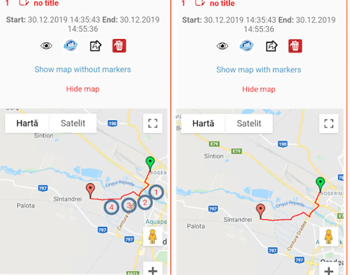 The application show and store (with a description and an image) the GPS coordinates and the weather conditions for where you are. You can share them with the world (online or trough sms) or you can save and share them later. You can record your route and export it into GPX format to be used with other apps or sites.