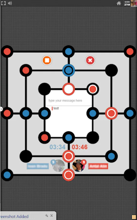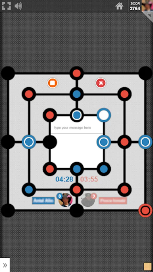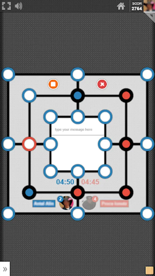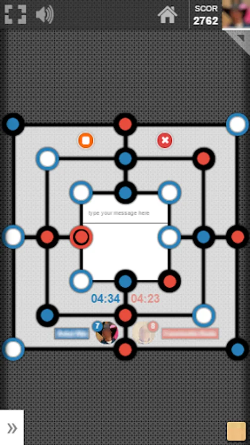 Each player starts with nine (or three, six, or twelve) pieces ("men"). At the start of the game, there are no pieces on the board. The pieces may rest at any dot on the board, where the lines intersect. The object of the game is to capture all but two of the opponent's pieces.