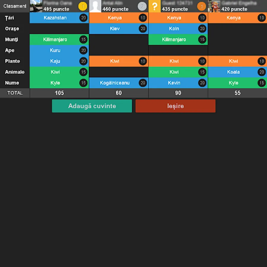5 word chosen by 4 players