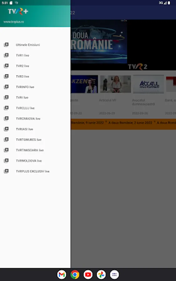 For each live channel, the currently broadcast show and the next show are also displayed live