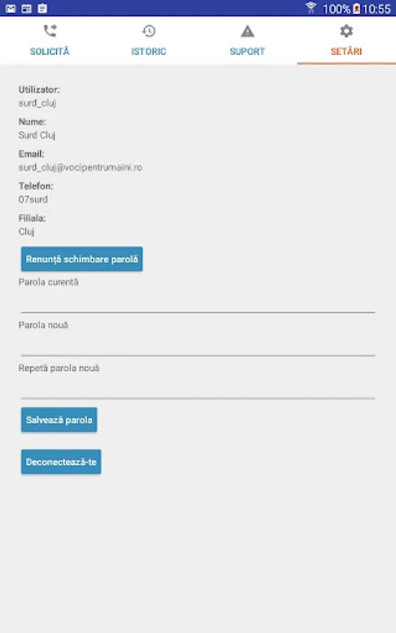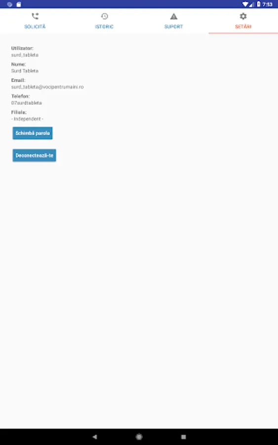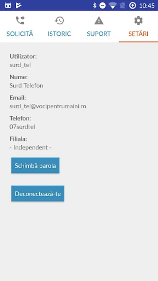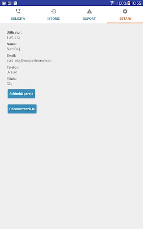 A deaf person accessing the service using an account. This account will be created after requesting a local branch of the National Association of the Deaf in Romania (ANSR).