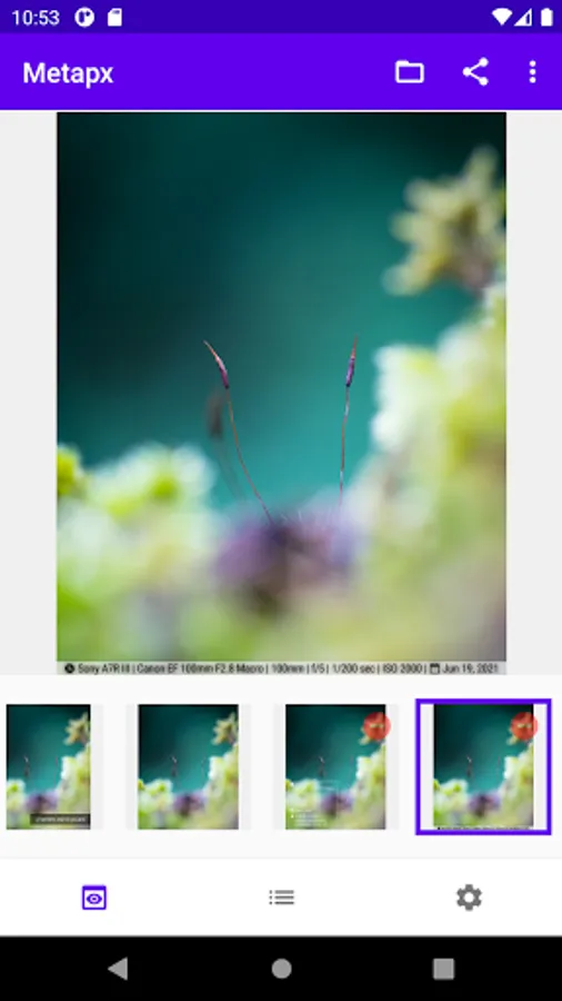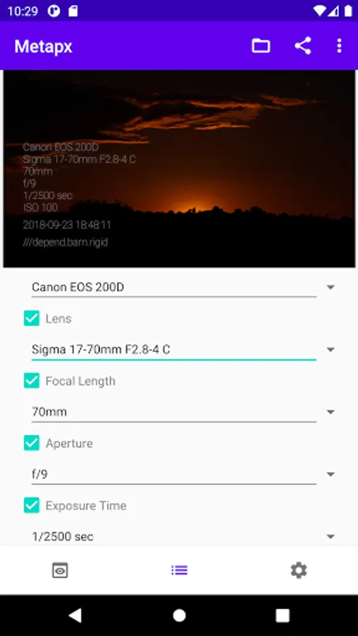Metapx uses the EXIF data of your photos to place a customizable watermark comprising camera and lens models, exposure time and aperture, as well as the date and time of the photo and where it was taken. You can add your own notes, or the address of your profile or website.