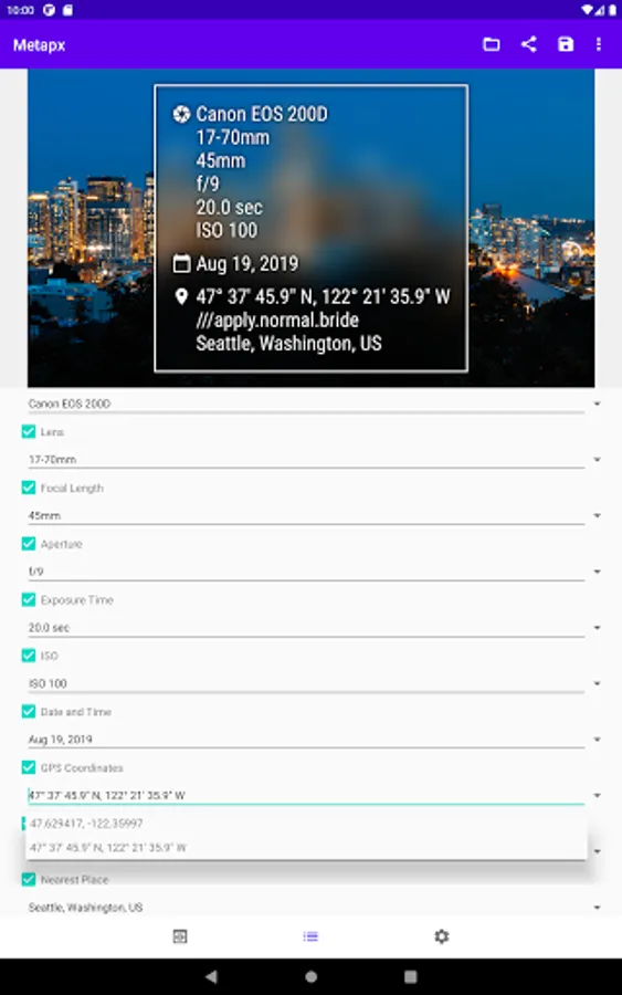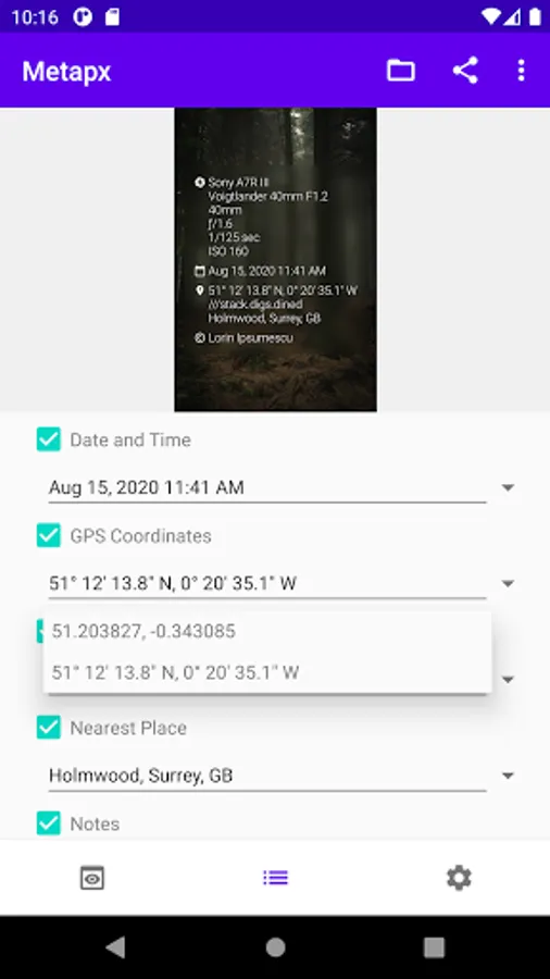 • what3words integration - make it easy for people to see the three words that point to the GPS coordinates of your photo; copy them to the clipboard to include in captions;
