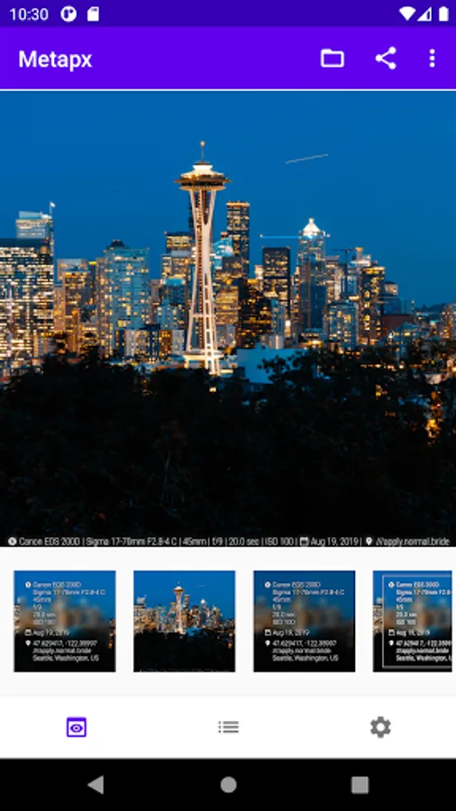 • save watermarked photos, with or without EXIF data, or share them directly to other apps on your device.
