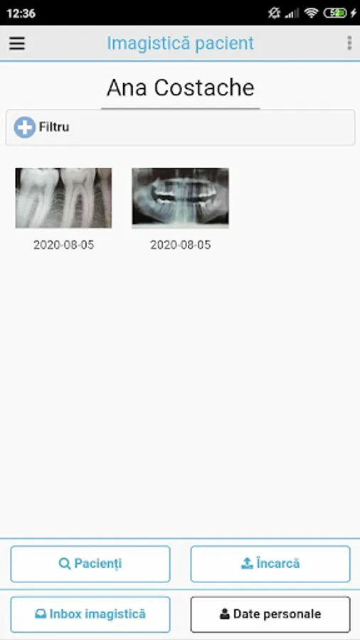 The application allows the doctor to have his own database with all the images of the patient, organized based on the name, the date when the investigation was made, or the type of investigation performed.