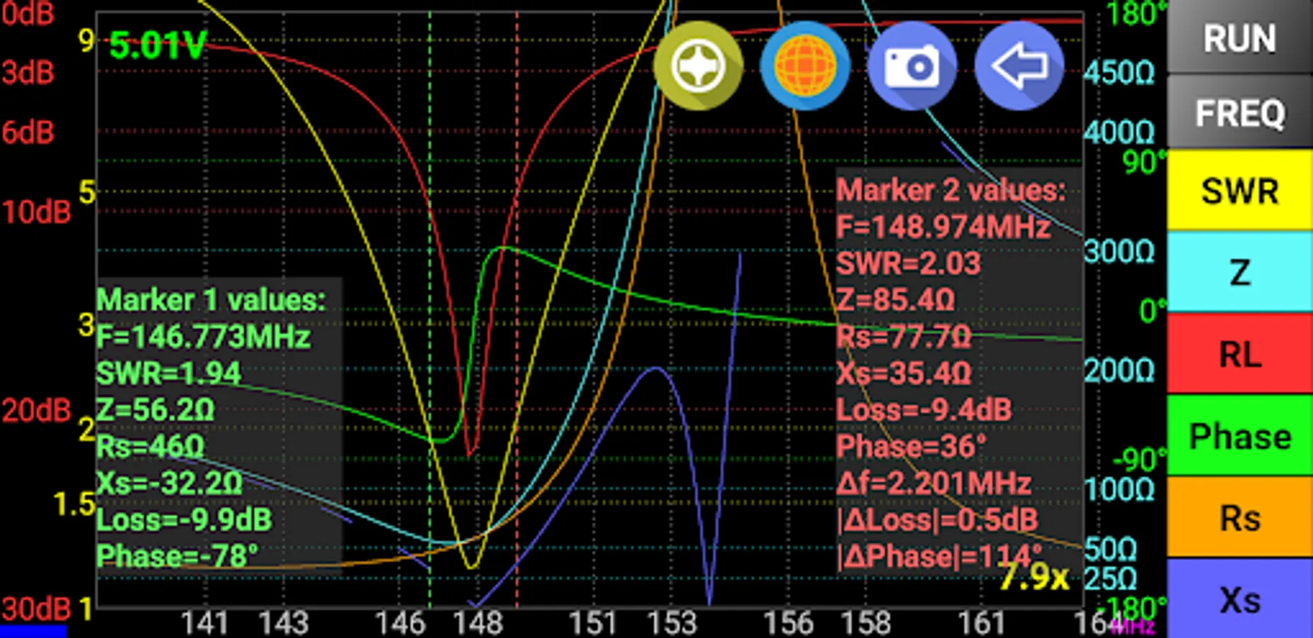 - parameters that can be measured : SWR, |Z|, Return Loss, Phase, Rs, |Xs| for miniVNA and signed Xs for miniVNA Pro;