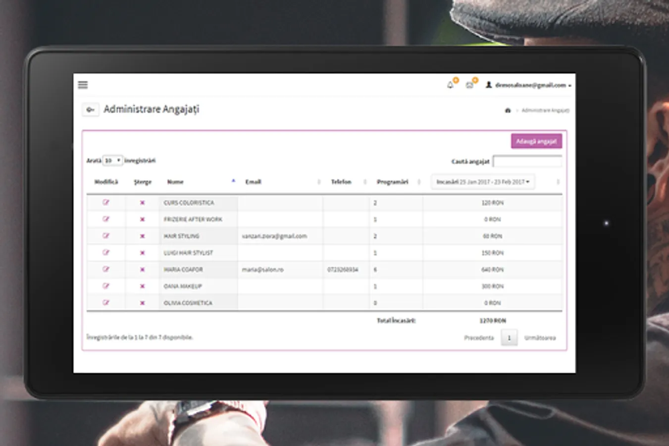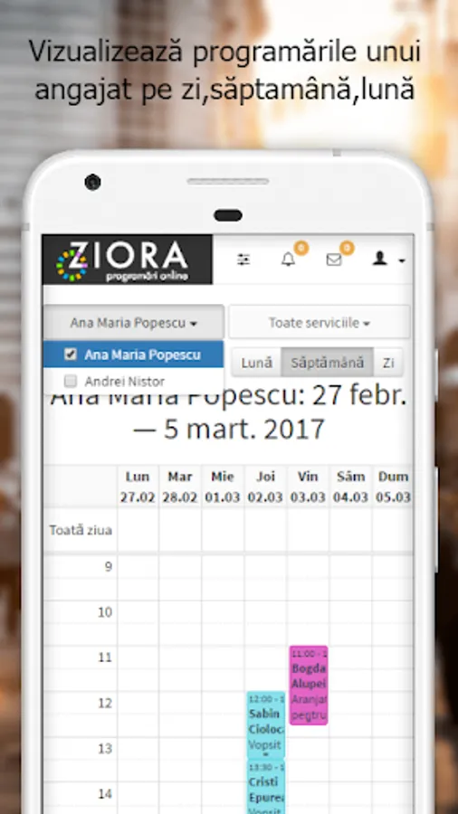 Staff management - Provides access to the complete or partial employee management and marketing, or allow staff to consult only permanent agenda. Define availability of dedicated employees working hours and individual services.