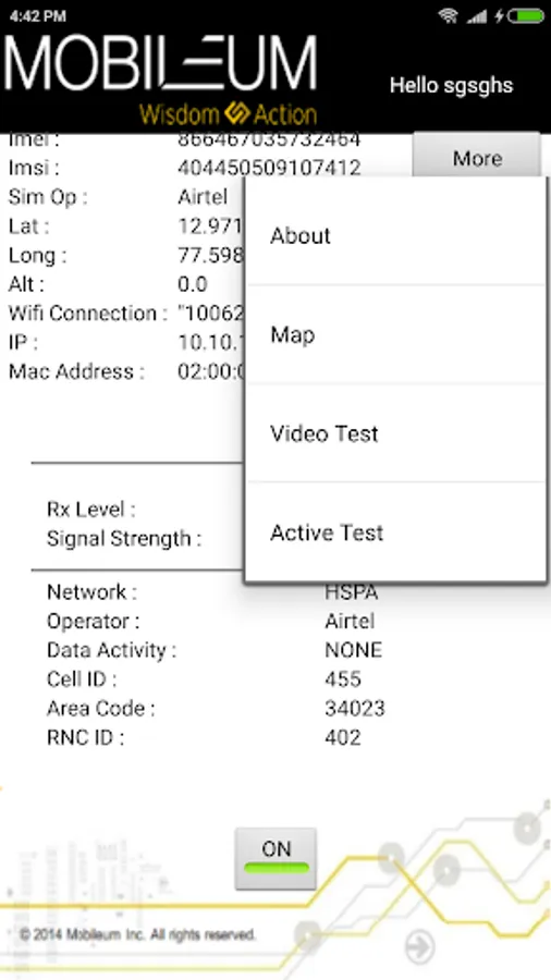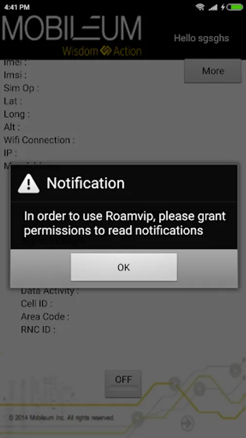 RoamVIP is an application which gathers live communication status and service availability on the handset, with the purpose of assessing the quality of experience of the subscriber when using mobile services.