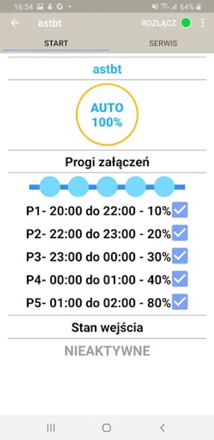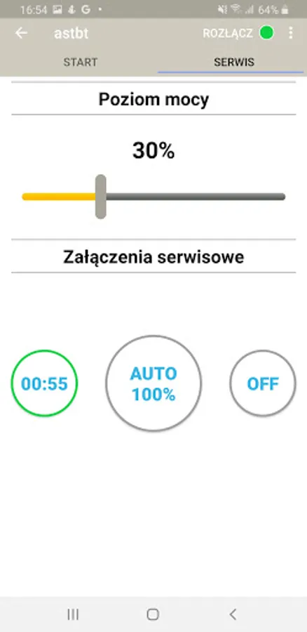 The application allows you to change the configuration parameters of the power reducer, such as reduction times and the power level, and perform service attachments. Communication with the reducer is via bluetooth.