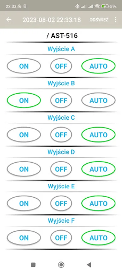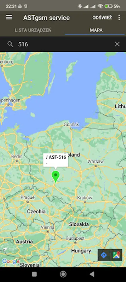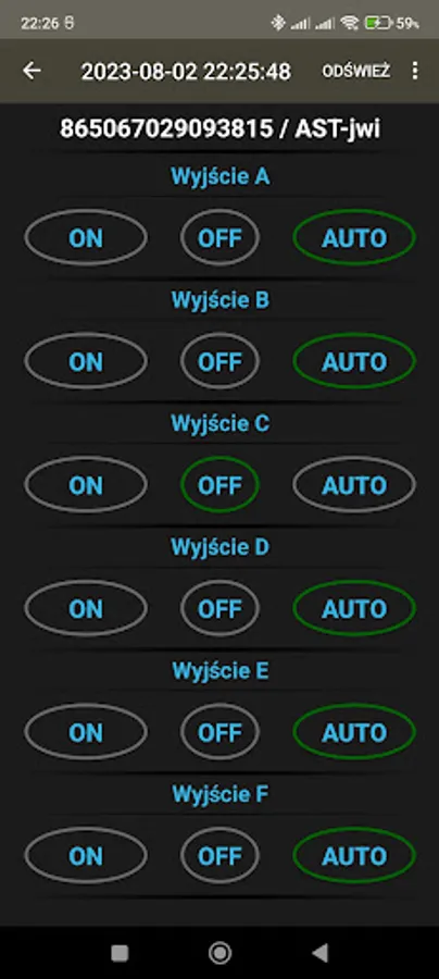 Application for service activation of ASTgsm devices via GSM communication. The application allows you to turn on the controller's service outputs ON, OFF, AUTO, and for a specified period of time. Visualization on a map, ability to navigate to a specific controller.