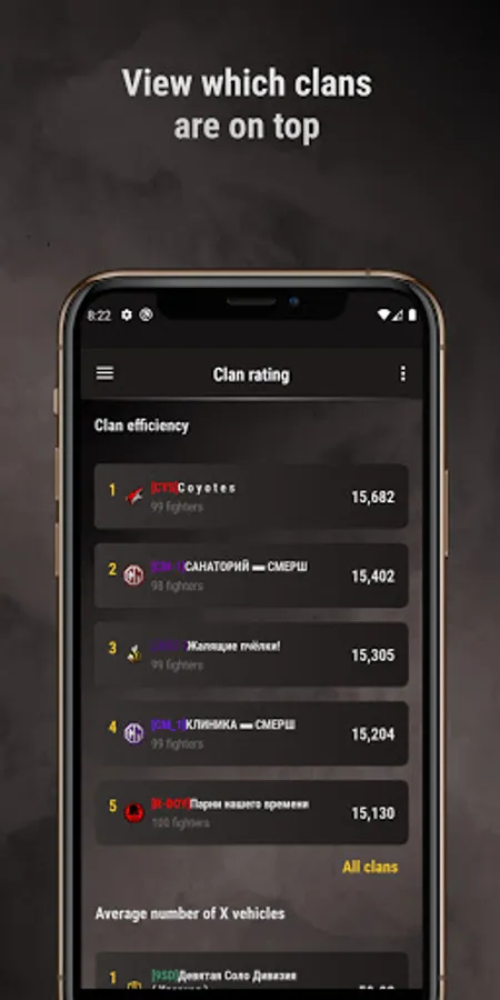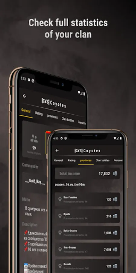 -Information about the clan, viewing the techniques of the clan, ratings of clan members;