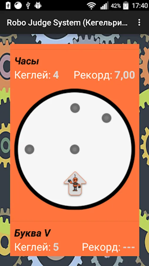 The application provides different modes of "judging" to track (marking), the robot pushes the pins out of the ring during the attempt.