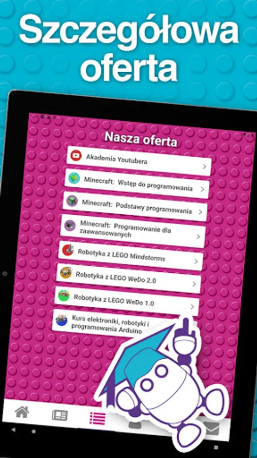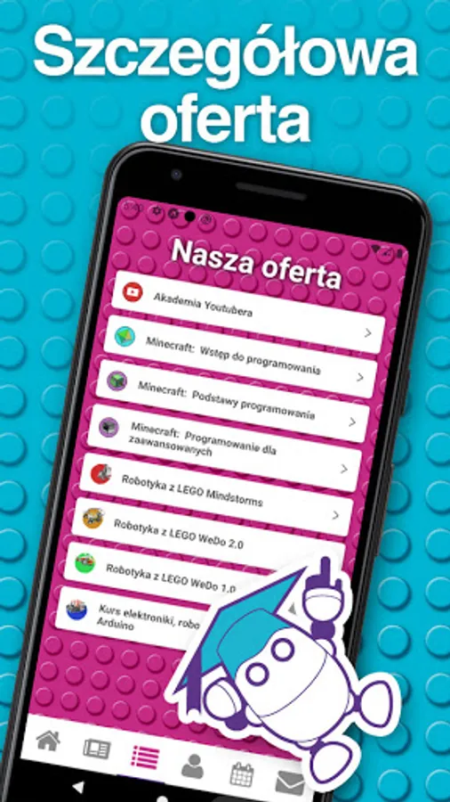 The RoboNauka application is intended for parents of course participants from the robonauka.pl offer. Thanks to the application, the parent can check on an ongoing basis which courses the child is participating in, when there are meetings, the history of payments and the status of settlements for classes. In addition, the application includes the current offer and the latest news from robonauka.pl